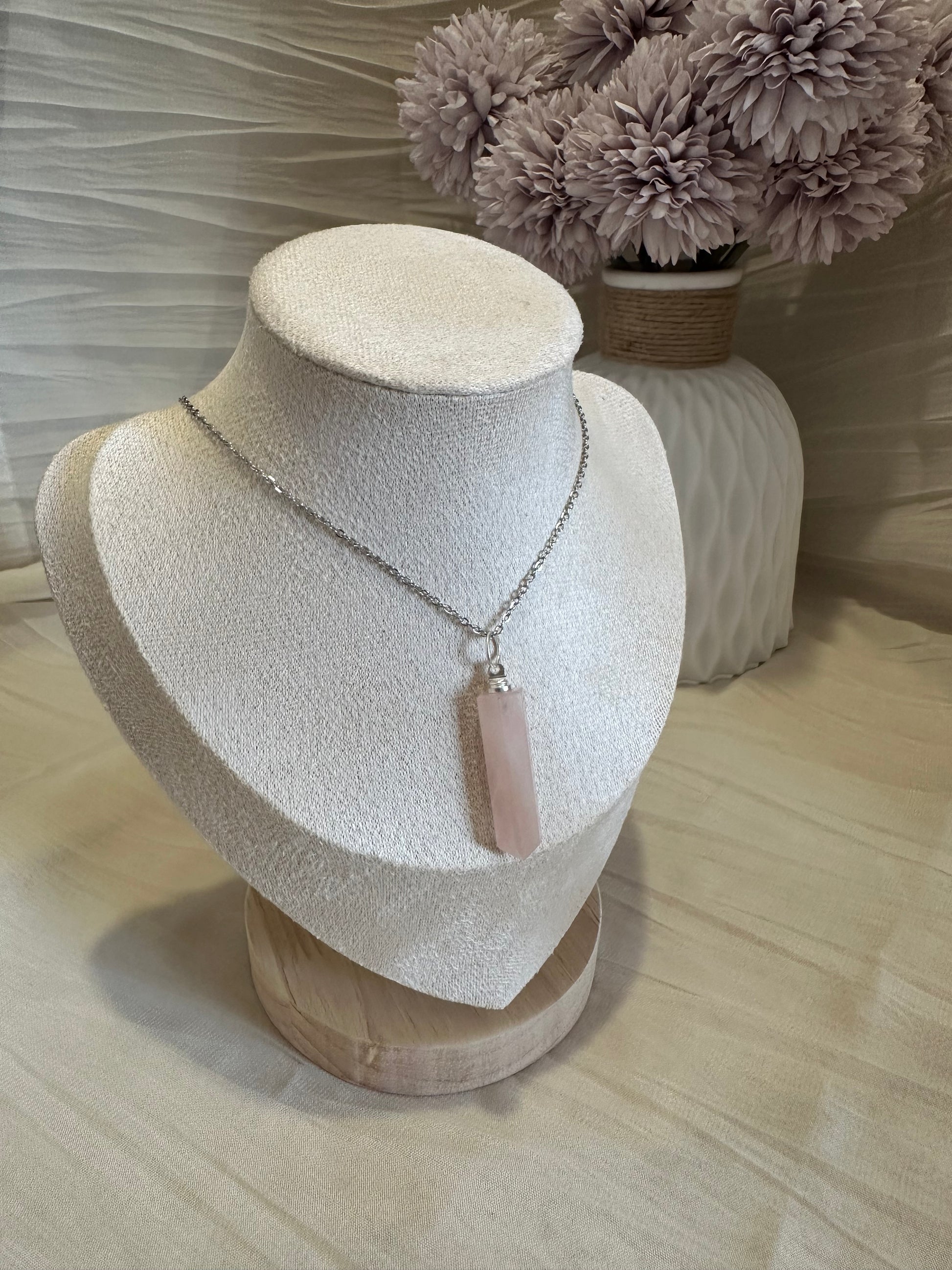 Collier Pointe Quartz Rose - Guérison Émotionnelle & Estime de Soi | 30 à 35 mm