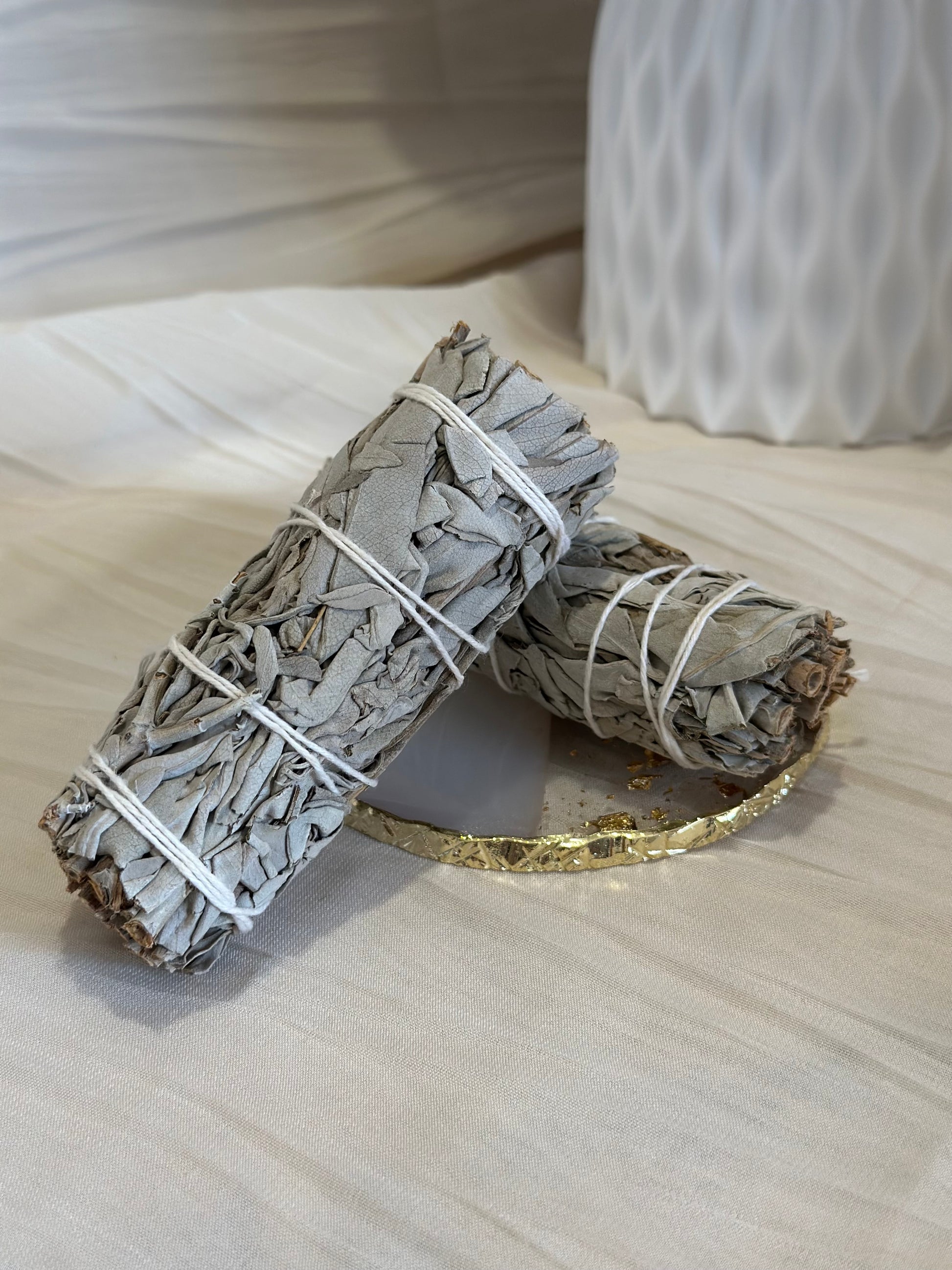 Ce fagot de Sauge blanche (Salvia Apiana) est issu des terres sacrées de Californie, où il est utilisé depuis des générations par les peuples natifs pour ses puissantes propriétés de purification.